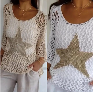 Make a bold style statement with our Women's Fashion Round Neck Crochet Knit Fishnet Top.✨💝